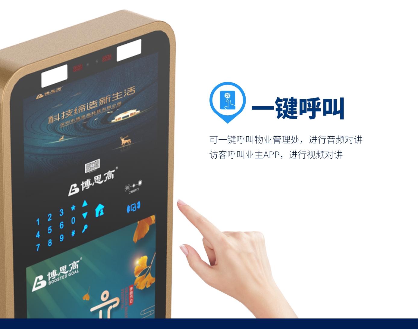 博思高人臉識別門禁廣告一體機(jī)KMJGG1是一種結(jié)合了人臉識別、門禁控制和廣告展示功能的設(shè)備,應(yīng)用在適用于社區(qū)、樓宇、學(xué)校、辦公區(qū)、酒 店、商場、公共服務(wù)管理區(qū)等需要使用通行管理及播放廣告的場景。設(shè)備運(yùn)用多重補(bǔ)光技術(shù),出入無憂,可無縫對接企業(yè)考勤系統(tǒng),識別準(zhǔn)確率≥99.9%,識別速度<0.5S,能夠?qū)崿F(xiàn)極速身份認(rèn)證和通行,為用戶打造安全、流暢的通行體驗。